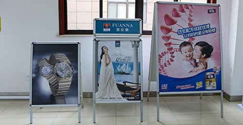 各式系列海(hǎi)報(bào)架,美(měi)觀大(dà)方,獨特的(de)外(wàiσ€≈¶)觀,流暢的(de)線條,适合用(yòng)于地(dì)産界,房(fáng)屋出租,品牌$ 宣傳、會(huì)議(yì)裝飾、酒店(diàn)大(dà)門(mén)口、超市(shì)特賣♣₹>•等場(chǎng)所。造型新穎,宣揚個(gè)性εβ,安裝極其簡單,擺放(fàng)自(zì)如(rú),展示無限靈活。